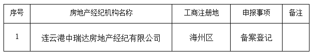 连云港市房地产经纪机构备案登记审核结果公告(2018年第9批)