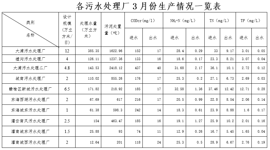 城市污水处理设施2021年3月份运行情况简报