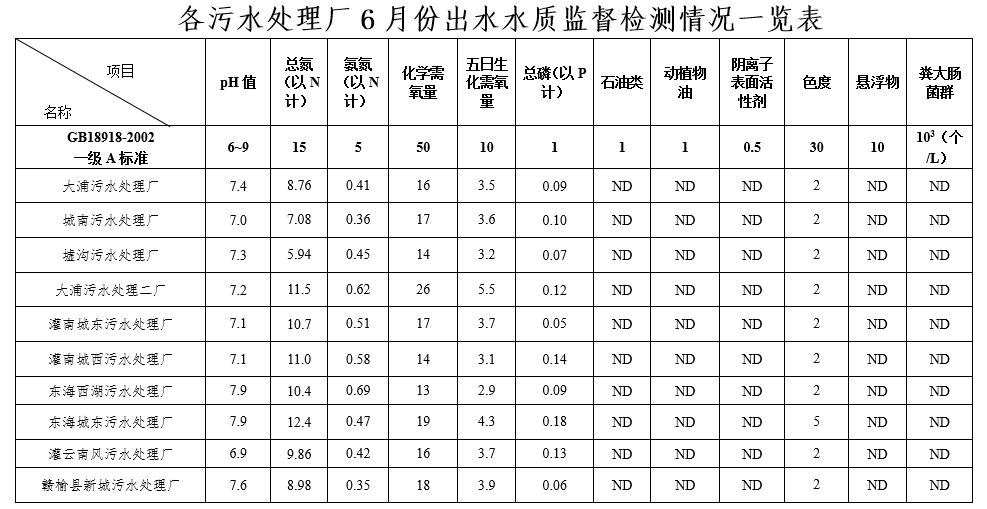 全市城镇污水处理行业监管工作全面加强,各污水处理厂运行实现稳定运行达标排放。10座城市污水处理厂均正常运行30天,污水处理量1390.74万立方米,平均生产负荷率达到76.4%,污泥处置量5964.69吨,CODcr削减量为1836.64吨,实现了安全生产和达标排放的生产目标。