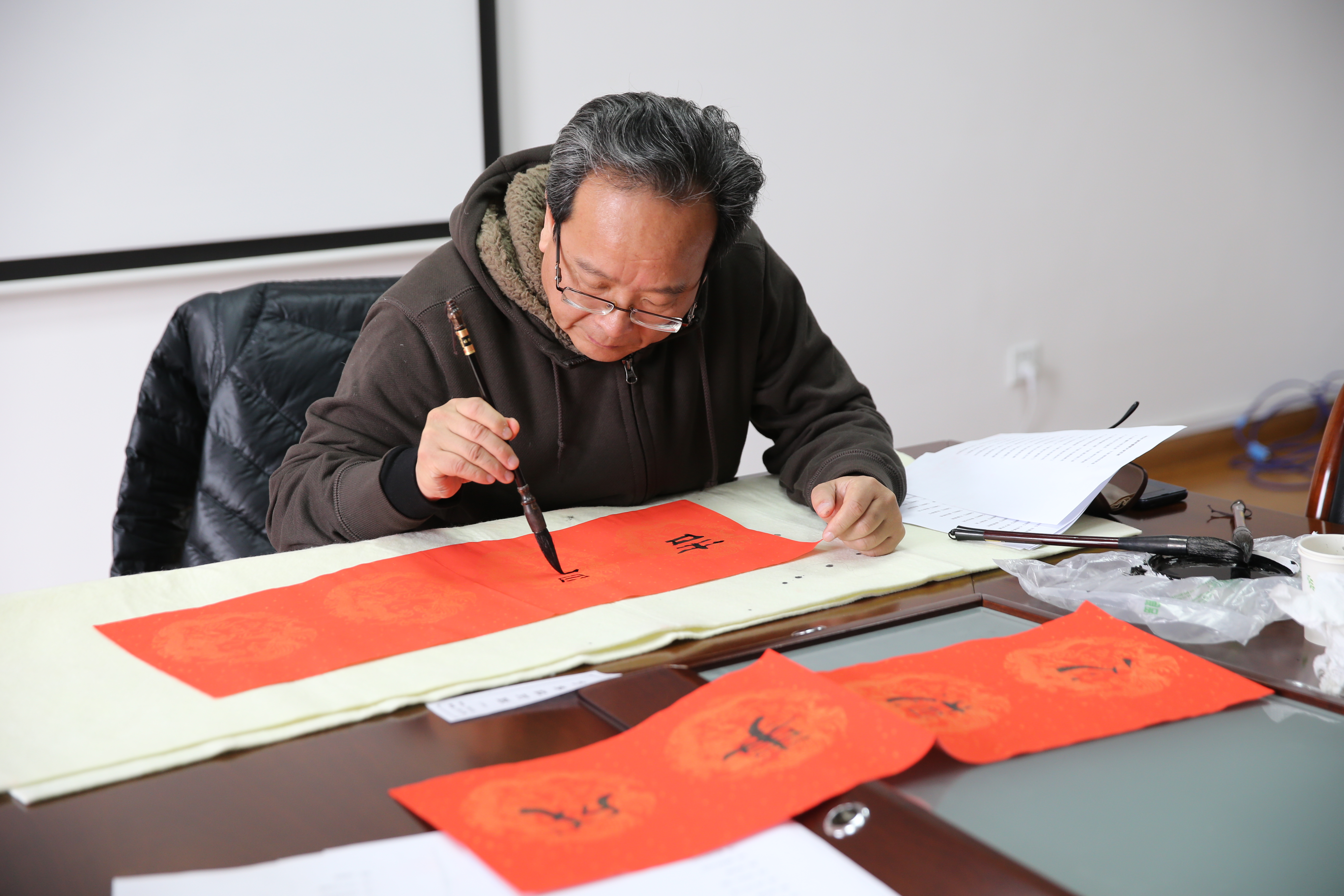 离退休干部处组织书法爱好者书写2020年春节对联