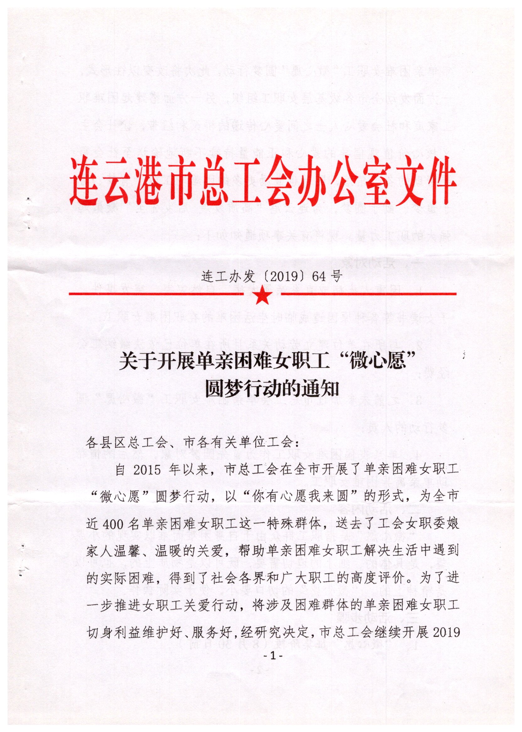 关于开展单亲困难女职工“微心愿”圆梦行动的通知